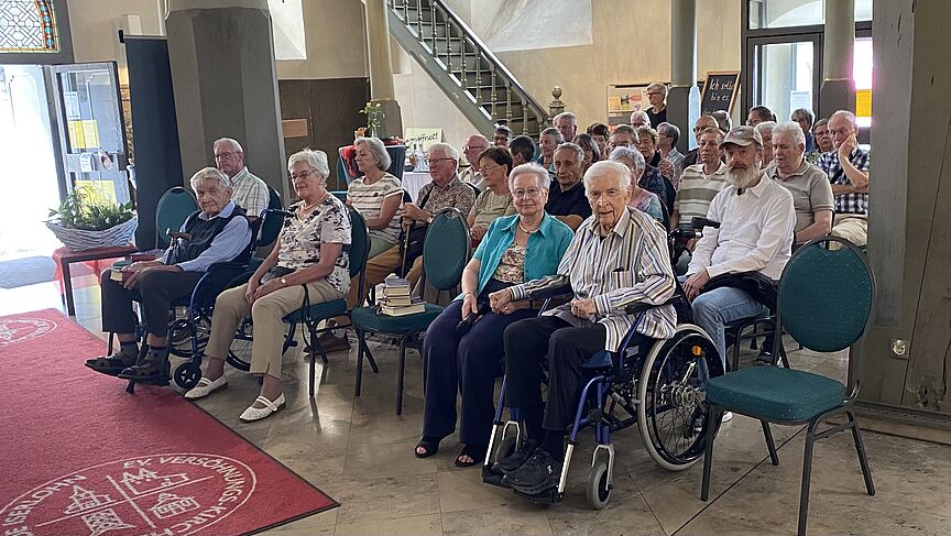 Charlotte Kroll und Kirchenmusikdirektor Hanns-Peter Springer hatten zu einem kleinen “Überraschungs-Orgel-Blumenstrauß” für Werner Kroll in die Reformierte Kirche in der Wermingser Str. geladen. Diese Information machte im ADFC natürlich schnell die Runde und so kam es, dass neben Familienangehörigen, Freunde und Bekannte auch eine stattliche Zahl von langjährigen ADFC-Wegbegleitern von Werner Kroll den Weg in die “Reformierte” fanden, um ihm persönlich und Auge in Auge zu seinem heutigen Ehrentag zu gratulieren.