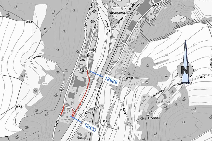 Bisher sieht die Lage dort folgendermaßen aus: Da der Gehweg von Hohenlimburg aus kommend nur eine Breite von 1,5 Meter aufweist, die man sich diesen zudem mit Fußgängern teilen muss, dann zusätzlich noch durchgängig mit einem hohen Bordstein versehen ist und der Radfahrer nicht mal eben von der Fahrbahn oder zurückwechseln kann, fahren die Radler fast ausnahmslos auf der Straße. Ab der Einmündung „Im Werth“ geht es momentan noch 300 Meter auf der Oeger Straße geradeaus, bevor man rechts abbiegt und nach 100 Metern auf das Ende der Ausbaustrecke stößt.