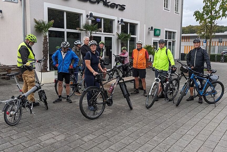 Trotz der ungünstigen Wetterprognosen konnte Tourenleiter Axel Klammer insgesamt 11 Teilnehmer, davon zwei weibliche Radlerinnen, zum Start am Bahnhof Menden begrüßen.