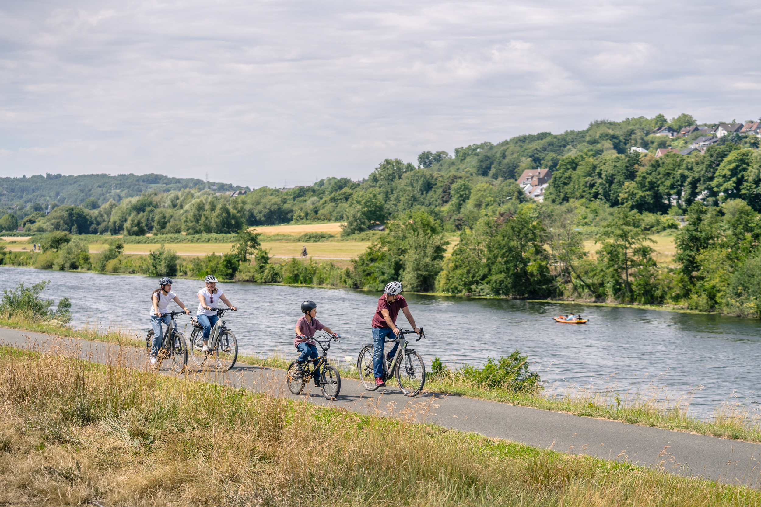 Immer am Fluss entlang: Mit der Familie auf der ADFC-Qualitätsradroute RuhrtalRadweg. © Dennis Stratmann
